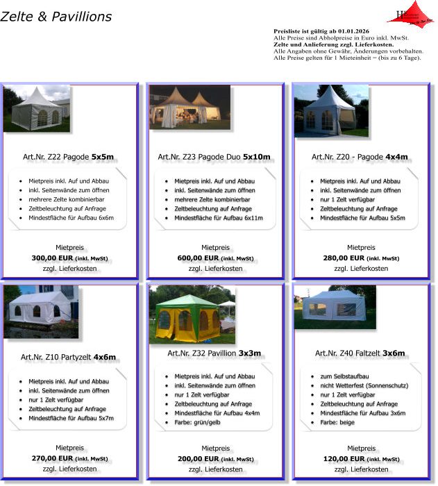 Partyzelte - Pavillons - Pagodenzelte - Zelte - Faltzelte - Zeltlandschaften
